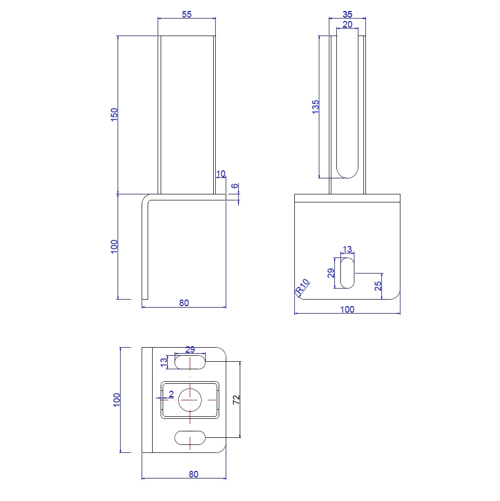 Für die Montage auf L-Steine zum Einstecken in Rechteckpfosten 60 x 40 mm.