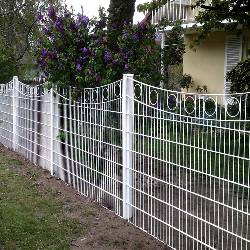 Aus kreuzweise stark punktgeschweißten Stahldrähten. Die waagerechten Drähte Ø 8,0 mm sind alle 200 mm (oder 300 mm Legi-R-L 6+5 mm) als Verstärkungsdoppeldrähte beiderseitig der senkrechten Drähte Ø 6,0 mm (Legi-R-L = Ø 5,0 mm) angeordnet. Die Gitterenden überlappen hinter dem Pfosten mit einer Auflage von mindestens 30 mm, so daß die Haken durch die Gitter greifen und ein Herausrutschen der Gitter am Pfosten unmöglich ist.